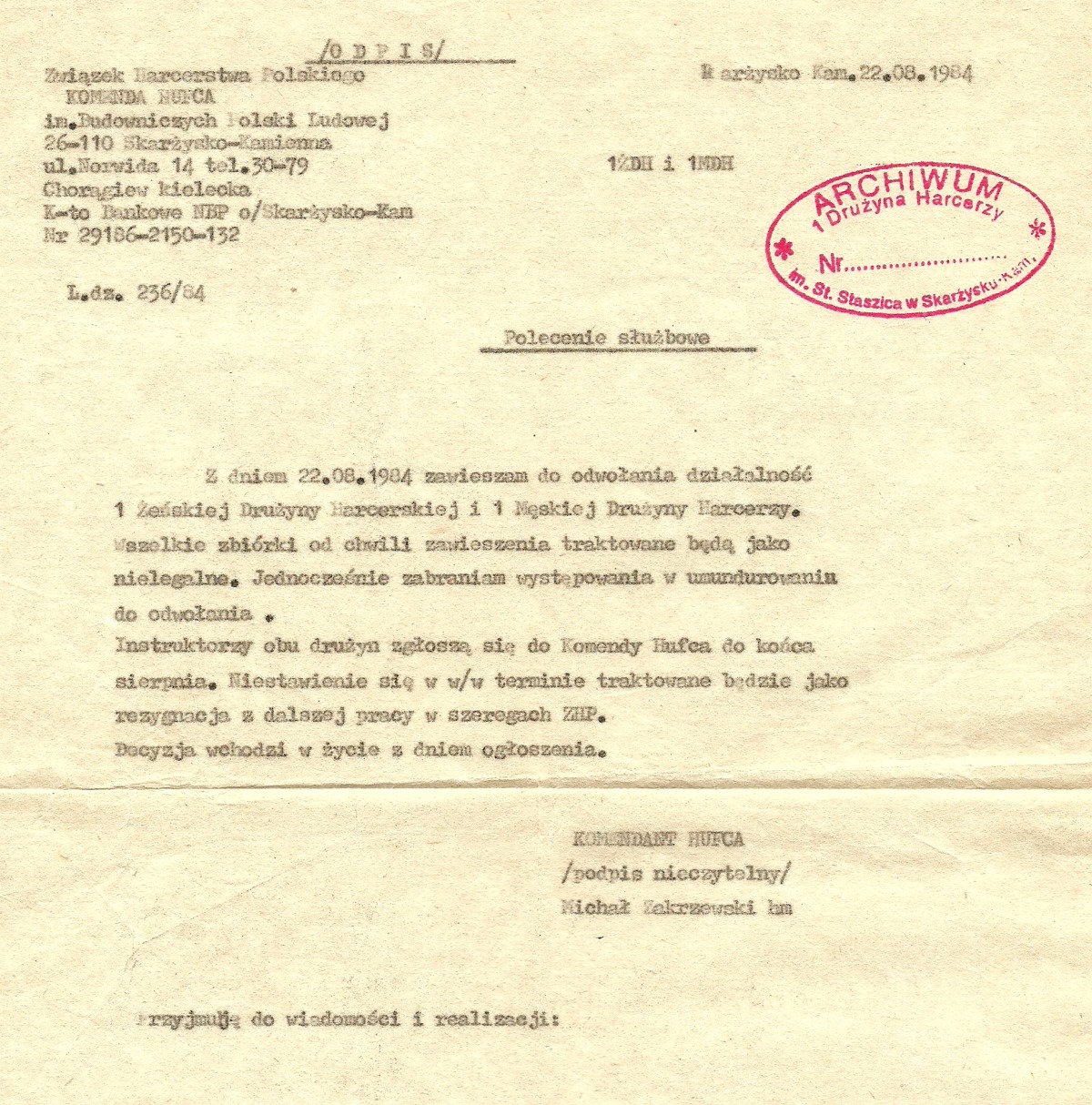 Komenda Hufca im. Budowniczych Polski Ludowej.